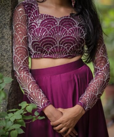 •Design Details: Full sleeves with sheer elegance, a structured blouse lining, and a voluminous skirt for that perfect twirl.