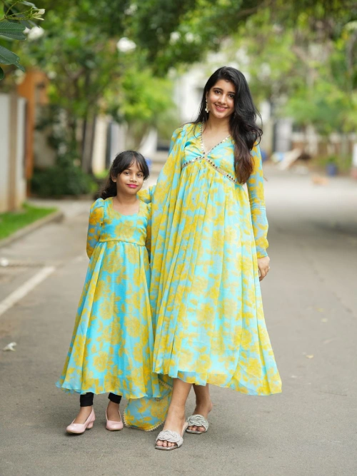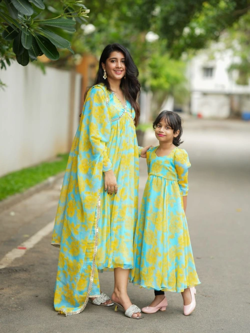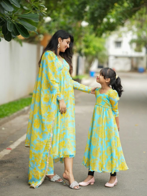 Candace Chiffon Alia cut Anarkali with mirror embellishments and Dupatta