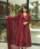 Anna is a designer Anarkali with intricate hand embroidery yoke and a dupatta with all over work.